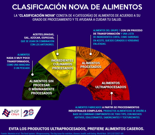 Si quieres saber más, puedes revisar los siguientes artículos: NOVA. The star shines bright y A new classification of foods based on the extent and purpose of their processing.
