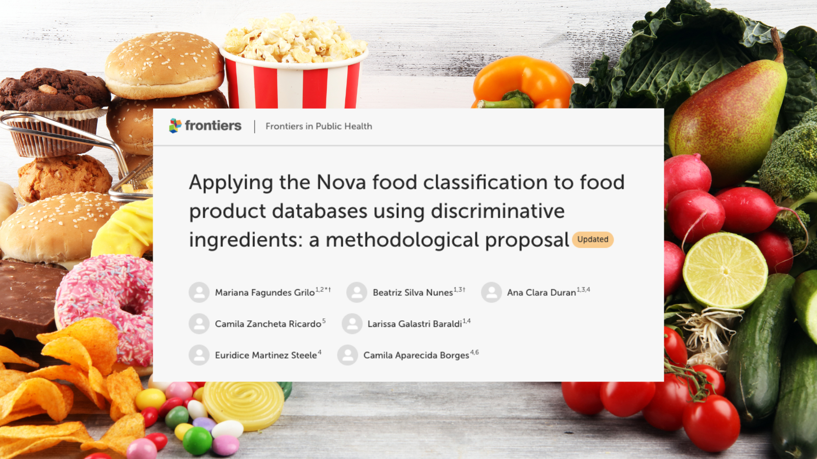 Grilo, M. F., Nunes, B. S., Duran, A. C., Zancheta Ricardo, C., Baraldi, L. G., Martinez Steele, E., & Borges, C. A. (2025). Applying the Nova food classification to food product databases using discriminative ingredients: a methodological proposal. Frontiers in Public Health, 13, 1575136. https://doi.org/10.3389/fpubh.2025.1575136