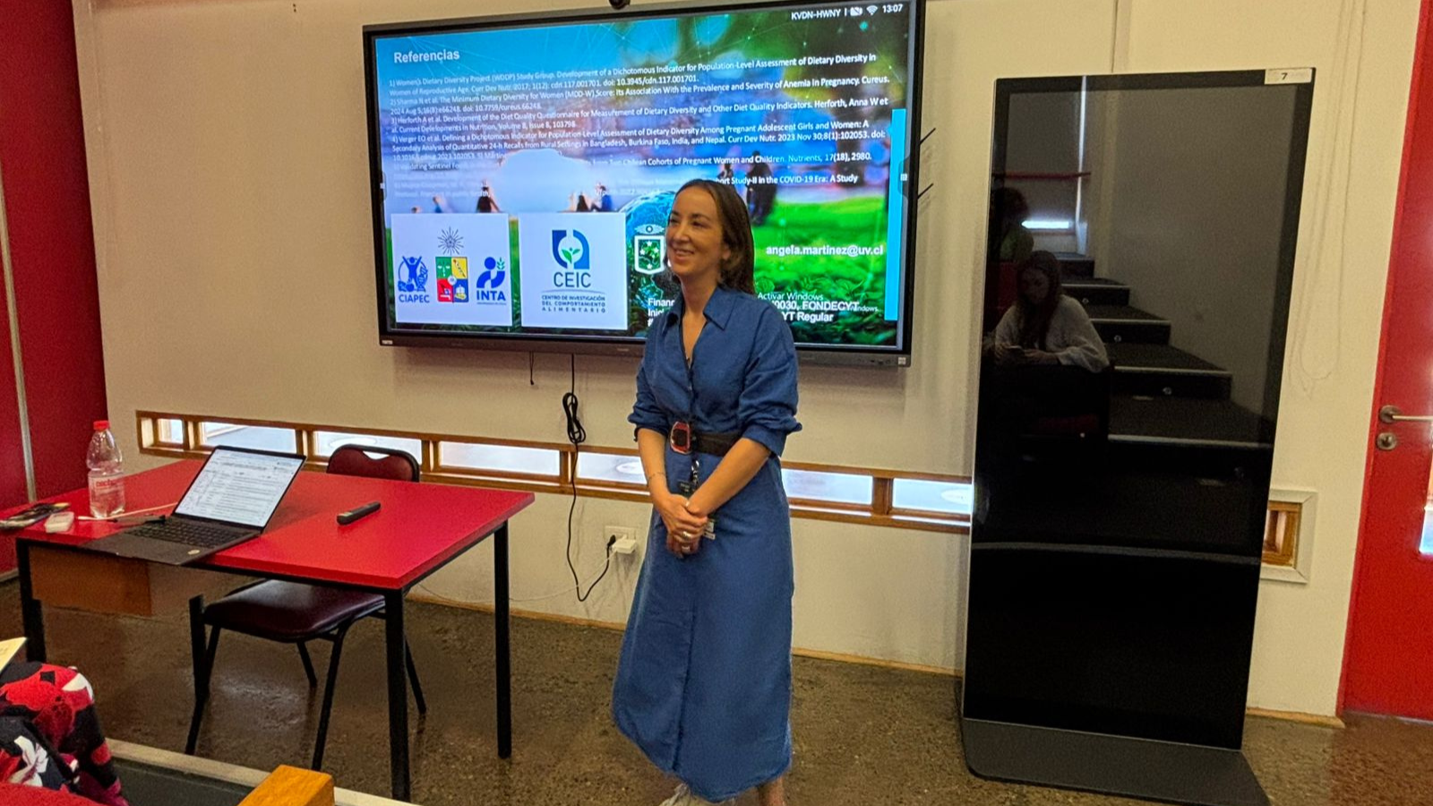 Ángela Martínez presentó “Factores asociados a una menor diversidad dietética en gestantes: evidencia desde la cohorte CHIMINCS-II”, aportando nuevos antecedentes sobre nutrición materna y desigualdades en alimentación durante el embarazo.