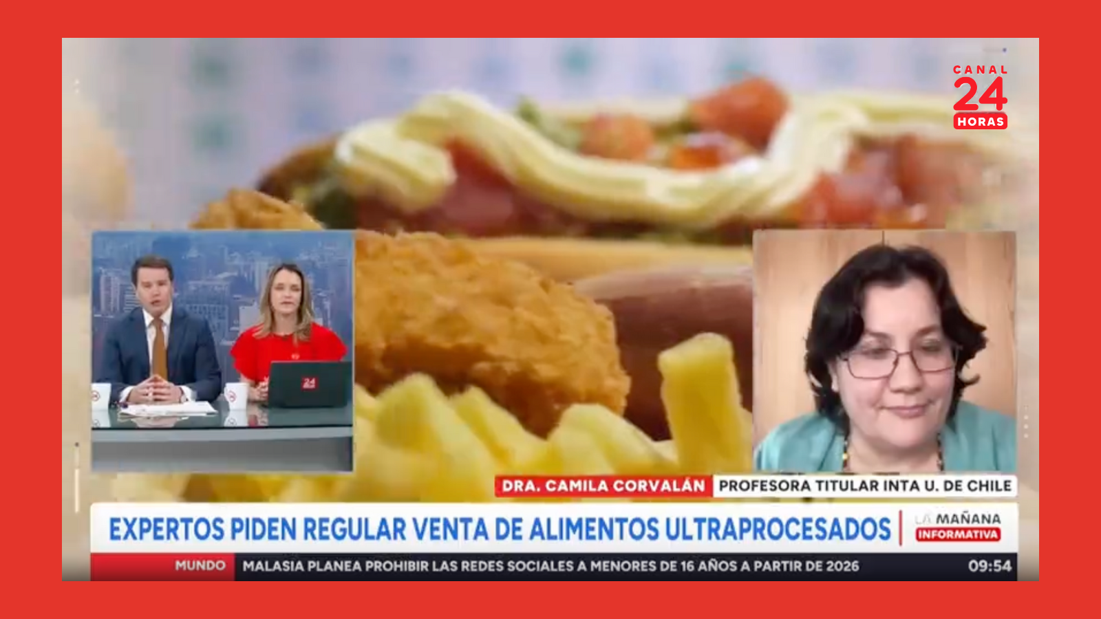 La investigadora Camila Corvalán conversó con los conductores de Mañana Informativa, de Canal 24 Horas, donde abordó los resultados de la reciente Serie de Lancet que alerta sobre los riesgos de consumir alimentos ultraprocesados, señalándolos como “el nuevo tabaco”.